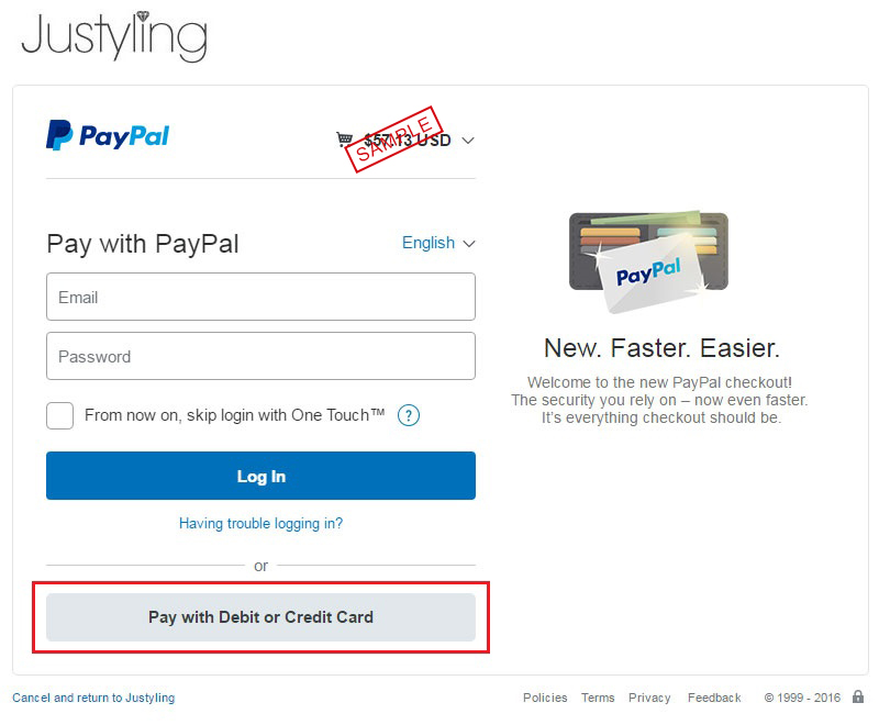 3. You will be redirected to the PayPal page to complete your order. On the PayPal page, click the "Pay with Debit or Credit Card or PayPal Credit" button.